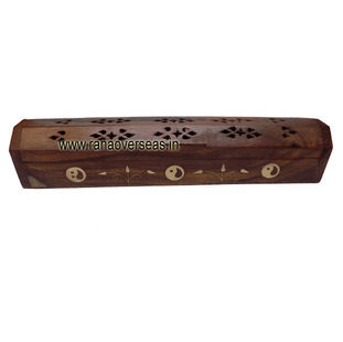 Rana Overseas manufacturer and Exporter of Wooden Incense Boxes, We have wide range of Wooden Incense Boxes, Our Range Includes Wooden carving incense box, Wooden brass inlay incense box, Wooden coffin box,Wooden agarbatti box, Wooden incense coffin box, Wooden Incense coffin, Wooden Antique incense boxes, Wooden antique coffin boxes etc.These boxes always bother because the incense stick drops the ashes messing up area. Heres an unique wooden incense stick box which collects the ashes inside it without messing. This fascinating box truly exhibits the creativity of the craftsmen. Beautifully Hand Crafted in Wood Use this wonderful incense holder to fragrance a room in an instant using Stamford incense sticks, Handmade from wood, brass metallic filling , Contains 2 groves to hold incense sticks , Contains a metallic plate for dhoop , Box can be closed with a lid , Has a compartment at the side to store incense sticks , Ashes will not get messed outside , Easy to clean , All Ash accumulates at Single point., No ash Mess -Keeps puja house or Office Desk clean , Fire Safe - Keeps Home & Office Fire safe as no flying fire speck , Child Safe - Safe with children Around , Elegant Looking , Craftsman Inspired Design Looks Divine when aromatic fumes emanate from them Car/ Vehicle Incense Stand, Best for In-Car or Vehicle Mobility due to Horizontal Layout, Extra Incense Stick Stash, Smart area alloacation, makes use of every space in the holder, thus a stash available to keep extra pack of DHOOP STAND - YES it has inbuilt inside a metallic Dhoop stand too. Different Designs and Various sizes and different looks are available We have a wide range of Incense Boxes available in Antique, Modern, Brass Inlay and Carving Designs.