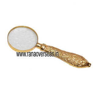Rana Overseas Inc manufacturer and Exporter of Magnifying Glasses , We have wide range of Magnifying Glass with Sea Shell Handles, Wooden Handles, Bone Handles, Horn Handles, Resin and Metal Plain and Embossed Handles. These Magnifying Glassed are attractive and sophisticated office or study desk accessory, handmade from brass Metal with Wooden, Sea Shell, Bone, Horn and Metal handle. The magnifying glass is made in the perfect size to read multiple words at a time, very lightweight and assembled to your comfort .A high quality, clean lens allows for the entire portion to be used optimally. Perfect for reading fine prints. An inexpensive yet thoughtful gift for those attracted by vintage charm.